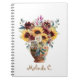 Cute Rustic Sunflowers & Burgundy Floral Notebook