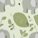 Cute Safari Animals Grey Elephants Leaf on Green Wallpaper