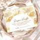 A sweet storybook-style safari design featuring gentle watercolor baby animals including lions, giraffes, and elephants surrounded by soft jungle greenery and delicate botanical details. The warm neutral palette of cream, honey gold, and soft olive creates a timeless nature-inspired aesthetic, while the elegant arched layout leaves beautiful space for personalized event details.