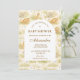 A sweet storybook-style safari design featuring gentle watercolor baby animals including lions, giraffes, and elephants surrounded by soft jungle greenery and a delicate botanical background. The warm neutral palette of cream, honey gold, and soft olive creates a timeless nature-inspired aesthetic, while the elegant arched layout provides a beautiful space for event details.