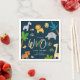 A little Wild One is on the Way! Modern baby shower paper napkis. Design features cute safari jungle animal illustrations on a trendy navy blue background. Personalise by adding mum-to-be name.