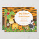Start your jungle themed baby shower off right with our adorable baby animals safari baby shower invitation. Our cute invitation features a tiger print background with a palm tree, parrot, giraffe, monkey lion, tiger & zebra set on a jungle leaf with flowers background. The coordination back of this invitation features jungle leaves with the sweetest little monkey! Visit our shop to view this design in different variations and for matching thank you note cards, postage stamps and stickers. ©Pixal Paper Prints
