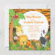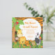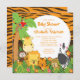 Start your jungle themed baby shower off right with our adorable baby animals safari baby shower invitation. Our cute invitation features a tiger print background with a palm tree, parrot, giraffe, monkey lion, tiger & zebra set on a jungle leaf with flowers background. The coordination back of this invitation features jungle leaves with the sweetest little monkey! Visit our shop to view this design in different variations and for matching thank you note cards, postage stamps and stickers. ©Pixal Paper Prints