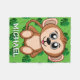 This cute monkey is sitting and waiting to play. Behind him is a green background with a jungle leaves pattern. Underneath him is the name of your child, who is playing in the rainforest with him. Add a cute buddy to your child's naptime.