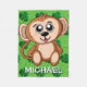 Cute Safari Monkey Green Cartoon Jungle Name Fleece Blanket