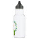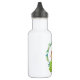 A waterbottle with a cartoon illustration of a little monkey peeking out from behind a green bush saying hello. Surrounded by a wreath of tropical leaves. The "Hello" text can also be personalised with a name or other text if you like.