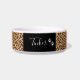 Make your pet's meal time fun and sassy with this Cute Safari Print Leopard Personalised Pet Bowl. It is a modern and classy design with black and brown animal print background and customised with pet's name in white trendy hand lettered script on front centre of black rectangle. Two cute small paw prints are on the side of the text.