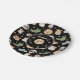 Cute Safari Jungle zoo animal faces birthday boy black paper plates with name and age included.