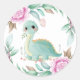 Cute Sage Dinosaur and Pink Peony Baby Shower Classic Round Sticker