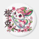 Cute Sakura Bunny Magnet with Japanese Brush Scrip