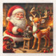 Cute Santa and Reindeer Glass Coaster