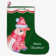 Here's a cute Santa bear image on this personalised Holiday Stocking that will please any child! The bear is a watercolor image in tones of brown, red, and white, with a touch of blue on his scarf fringe. The image is placed on a dark holiday green background. Your child's name is in green on a white and red scalloped border at the top of the stocking. A second text field is on the toe; make it say whatever you'd like! *Image design credit to AT Art Digital.