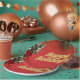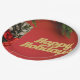 Celebrate the magic of Christmas with this adorable Santa-themed plate. Featuring a warm red background, festive pine branches, glowing lights, and a cute Santa illustration alongside wrapped gifts, this plate is perfect for Christmas dinners, holiday treats, or seasonal home décor. A charming choice for families, kids, and anyone who loves joyful Christmas decorations.