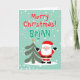 Cute Santa Claus cartoon Christmas card for kids. Cute Holiday card for children. Personalize with unique name. Adorable illustration. Santa and tree with star in the snow.