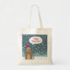 Cute santa claus kitten in xmas snowy landscape tote bag