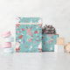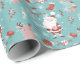 Cute Santa Claus and reindeer wrapping paper personalised with a name or any custom text. Great gift wrap for Christmas or the Holidays, featuring cute animals and winter illustrations in blood orange or soft red colour and aqua green.