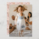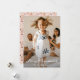 Custom photo Christmas card featuring a full-bleed photo with an elegant script font title on the front and a cute pattern with Santa Claus, reindeer, snowman and Christmas trees at the back.