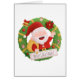 A greeting card with a cute Christmas illustration and doodle to put a smile on the recipient's face. It features a jolly Santa Claus who is holding on to a sack of presents popping out from a Christmas wreath! The wreath is decorated with Christmas classics such as star, bells and ribbon, ornaments, Christmas flower, mistletoe and candy cane! Personalise your Christmas greeting in the space provided!
