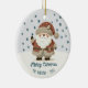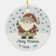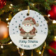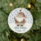 Cute Santa Clause Snowflakes Drawing Christmas Holiday Ceramic Ornament. A cosy, Boho-inspired Christmas ornament featuring cute drawing of a Santa Claus on a snowy hill. Soft earthy tones such as terracotta, cream, and green. Delicate snowflakes are scattered across the ornament, adding a touch of winter magic. The text 'Merry Christmas' is in elegant script. The overall aesthetic exudes a warm, rustic, and modern Bohemian feel, perfect for a stylish yet festive holiday look. Add your name and year.