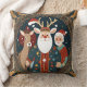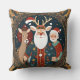 Cute, whimsical Santa, deer, and elf inter holiday decor pillow.