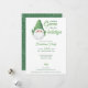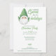 Fun and festive, these Christmas party invitations are the best way to send warm wishes this holiday season. The design features a cute green garden gnome who looks like Santa with white snowflakes on the back. Change the text to fit your party details and send them off via print or digital.