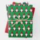 Assorted collection of three cute gnome pattern wrapping paper sheets.