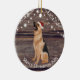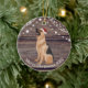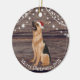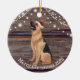 This ceramic Christmas ornament has a cute German Shepherd wearing a red Santa hat , wood and lights background and a message from the Shepherd on the back. This ornament is perfect for your tree or to give as a gift.