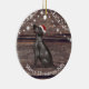 This ceramic Christmas ornament has a cute Labrador wearing a red Santa hat , wood and lights background and a message from the Labrador the back. This ornament is perfect for your tree or to give as a gift.