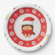 Add a playful touch to your holiday table with this adorable paper plate featuring a cheerful Santa character in a red hat and scarf, surrounded by snowflakes and peppermint candies. The festive red background and green rim make it perfect for Christmas parties, winter birthdays, or seasonal gatherings. Ideal for kids and family events, this plate brings joy and color to every bite.