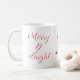 Cute Red Santa Kitty on white mug with text "Merry & Bright". Created with a smile by iolantesdesigns :-)!