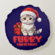 Cute Furry Christmas kitten design on round pillow.