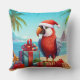 Cute Santa Parrot Tropical Beach Christmas Throw Pillow
