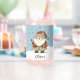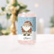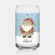 Cute Santa Snowflakes Kids Name Can Glass. A cosy, Boho-inspired Christmas can glass featuring a cute Santa Claus, with soft earthy tones such as terracotta, cream, and green. Delicate snowflakes are scattered across the glass, adding a touch of winter magic. The overall aesthetic exudes a warm, rustic, and modern Bohemian feel, perfect for a stylish yet festive holiday look.