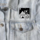 This original happy father christmas illustration on this customisable christmas button was drawn in pen and ink. The black and white christmas illustration shows a cute santa carrying his sack on the snow covered roof. Santa really stands out against the starry sky as he delivers his christmas gifts. A decorated christmas tree is in the window and a large star is shining in the night sky. This  cute christmas button is customisable you can personalise it with you’re own message. This santa drawing is part of a collection of four black and white pen and ink christmas illustrations.