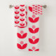 Cute Scandinavian Botanical Geometric Art in Pink and Red Bath Towel Set