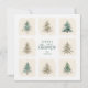 This design features a charming collage of Nordic-style Christmas trees illustrated in soft Scandinavian tones that bring warmth, originality, and a distinctly modern aesthetic. The eight carefully arranged illustrations create a balanced and serene festive composition. At the center, the phrase Merry Christmas stands out in an elegant green tone, while the personalization with the name of the family or sender adds an extra special touch.