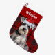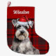 Cute Schnauzer Dog Holiday Plaid Personalized Large Christmas Stocking