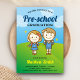 Amaze your guests with this cute preschool graduation invite featuring cute students with modern typography against a bright sunny background. Simply add your event details on this easy-to-use template to make it a one-of-a-kind invitation. Flip the card over to reveal a yellow and white stripes pattern on the back of the card.