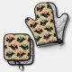 Cute Scottie Dog Snow Fun Pet Pattern Gold Oven Mitt & Pot Holder Set