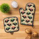 Sprinkle some holiday magic into your kitchen with a Scottie dog oven mitt and pot holder set ! A vintage-style design with whimsical illustrations inspired by 1930s Art Deco Christmas cards. It features cute Scottish Terriers wearing festive bows, joyfully running amidst snowflakes and stars. This simple, playful pattern brings a nostalgic touch with a modern twist, making it a delightful and fun kitchen accessory. Printed colours: red, green, black, white and gold.