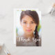 Graduation photo "Thank you" card with a cute, whimsical script font and a full-size portrait on the front. Personalised with your photo, your name, school name, and graduation year. The back has a 2nd photo and includes a message to your guests. Design a card for each guest, or write a general message for everyone who will be receiving a "Thank you" card.