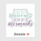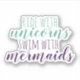 Stylish and fun, this cute and whimsical removable sticker is the perfect way to add some flair to your computer, locker, guitar case or anything else you can think of since these are vinyl. Features green and purple text "ride with unicorns swim with mermaids."