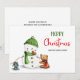 Adorable Christmas card with an illustration of a cute snowman surrounded by some animal friends. Personalise the text to add your own heartfelt message. Illustrated and designed by Patricia Alvarez.