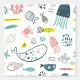Cute Sea Creatures Fish Whales Kids Pattern Wallpaper features cute whimsical fish, jellyfish, whales, crabs, starfish and seaweed on a white background. Perfect for kids bedrooms, nursery decor, playroom, home decor, office and party decor. Created by Evco Studio www.zazzle.com/store/evcostudio