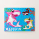 This cute illustrated cartoon shark design is great for the shark lover in your life. These blue, red, and green sharks will make building this puzzle extra fun for kids, both boys and girls. The white and blue text name is customisable!