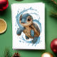 Celebrate the season with this adorable watercolor sea turtle Christmas greeting card, perfect for beach lovers and coastal holiday enthusiasts. Featuring a charming cartoon turtle with big expressive eyes surrounded by festive water splashes, this unique holiday card brings tropical warmth to winter celebrations.