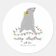 This cute Christmas seal is floating on ice decorated with Christmas lights.