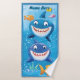 Two cute, smiling sharks feature on this beach towel. Customise it with a name and it makes a perfect towel for a boy who loves sharks!