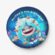 Paper Plates for kids Birthday with a cute shark, under the sea jawsome Birthday pool party. Easily personalise the text. Please visit the store for the full line of products that are available. - Kate Eden Art.