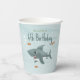 Make a splash at your child’s birthday with these cute shark-themed paper cups! This fun ocean birthday design features a playful cartoon shark, colourful fish, seaweed, and a blue underwater background—perfect for boys who love the sea. Personalise with your child's name and age using the editable minimalist script. Ideal for a 6th birthday party, but fully customisable for any age. Great for ocean, under-the-sea, or shark party themes!